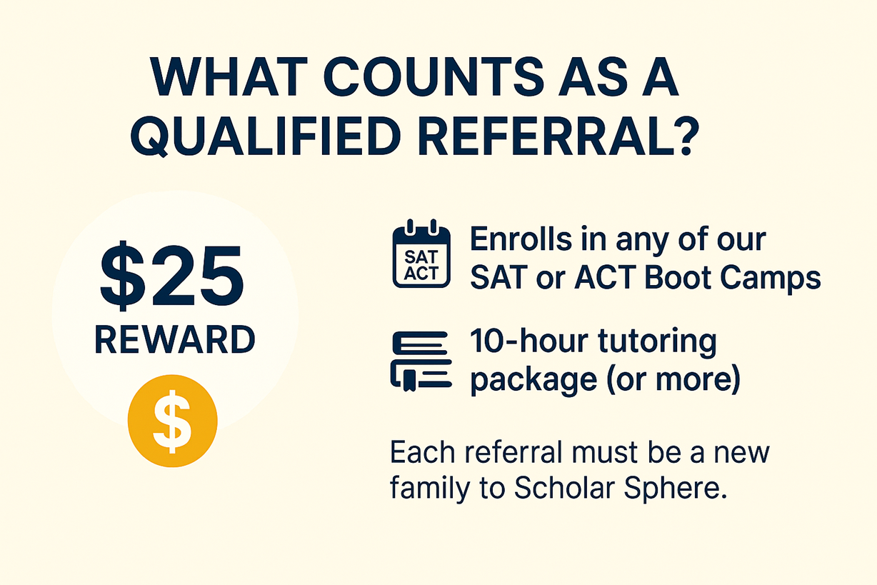 Anyone can refer! Whether you’re a current parent, student, tutor, or friend of Scholar Sphere—you’re welcome to share the word.